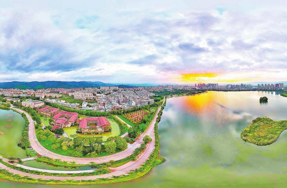 r夕阳西下,弥勒髯翁森林公园的栈道上,数十位老人正跟着音乐打太极。远处的甸溪河波光粼粼,与天边的晚霞相映成趣。“在这里过冬,不是简单的避寒,更像是换一种生活方式。”定居弥勒3年的上海旅居客周力泽说,他早已把这里当作第二故乡。